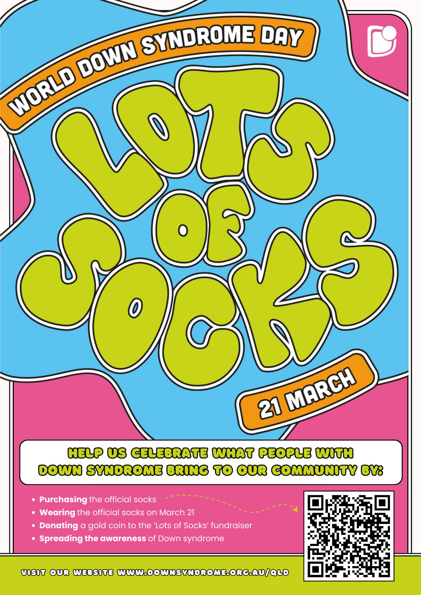 Visit the Down Syndrome Australia shop to purchase your socks and click below to download our Lots of Socks posters to put up around your school or workplace.