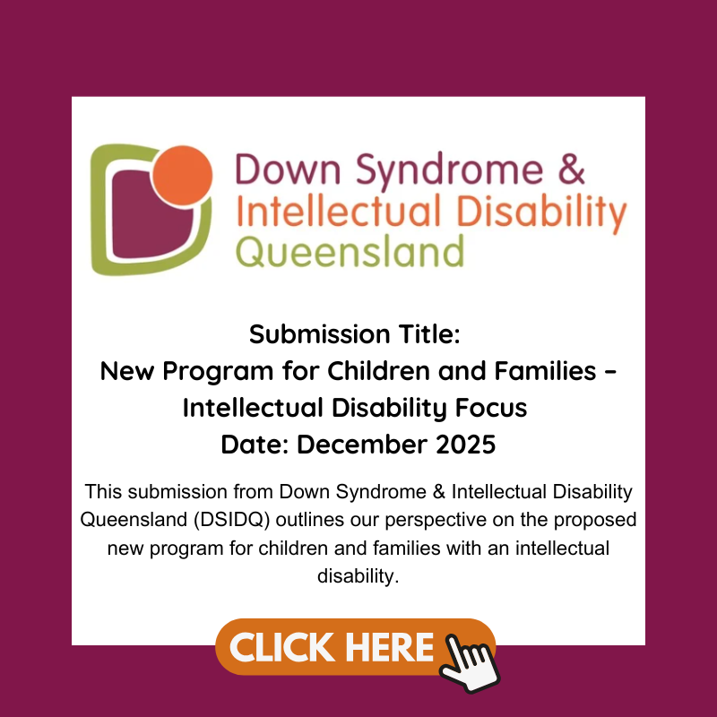 This submission is provided by Down Syndrome & Intellectual Disability Queensland (DSIDQ), Queensland’s peak body for people with intellectual disability, committed to supporting, advocating for, and empowering children, families, and communities across the lifespan. It outlines DSIDQ’s perspective on the proposed new program for children and families, drawing on our role in connecting individuals with intellectual disability to information, support, and opportunities for inclusion.