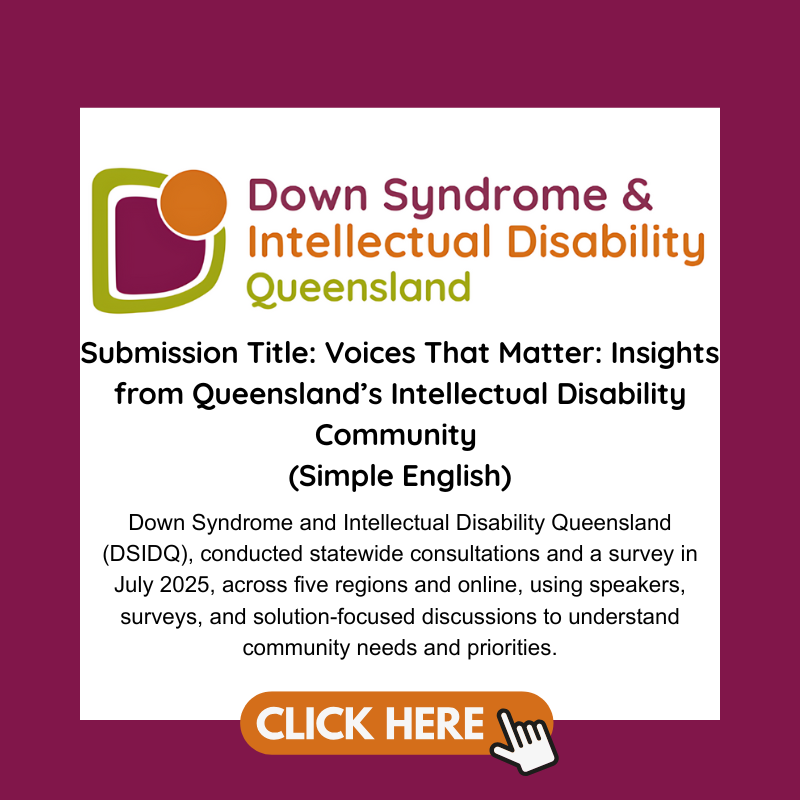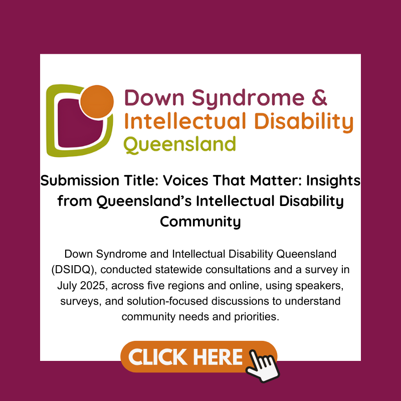 Down Syndrome and Intellectual Disability Queensland (DSIDQ) is the peak body for people with intellectual disability across the state. In July 2025, DSIDQ conducted statewide consultations and survey to gain a deeper understanding of community needs, challenges, and priorities.