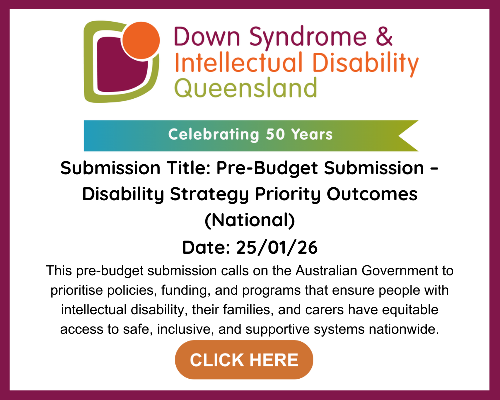 Down Syndrome & Intellectual Disability Queensland (DSIDQ) urges the Queensland Government to prioritise policies, funding, and programs that ensure people with intellectual disability, their families, and carers have equitable access to safe, inclusive, and supportive systems. People with intellectual disability face systemic barriers across health, education, employment, housing, safety, and community participation. Without targeted investment and proactive policy, these barriers create preventable inequities, reduce social and economic participation, and increase long-term costs for government services.