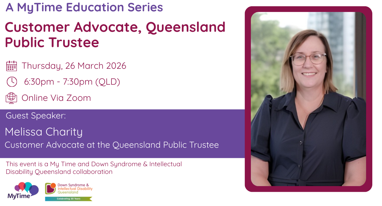 For further information and support, please contact our MyTime Facilitator on (07) 3356 6655 or send an email to office@dsidq.org.au