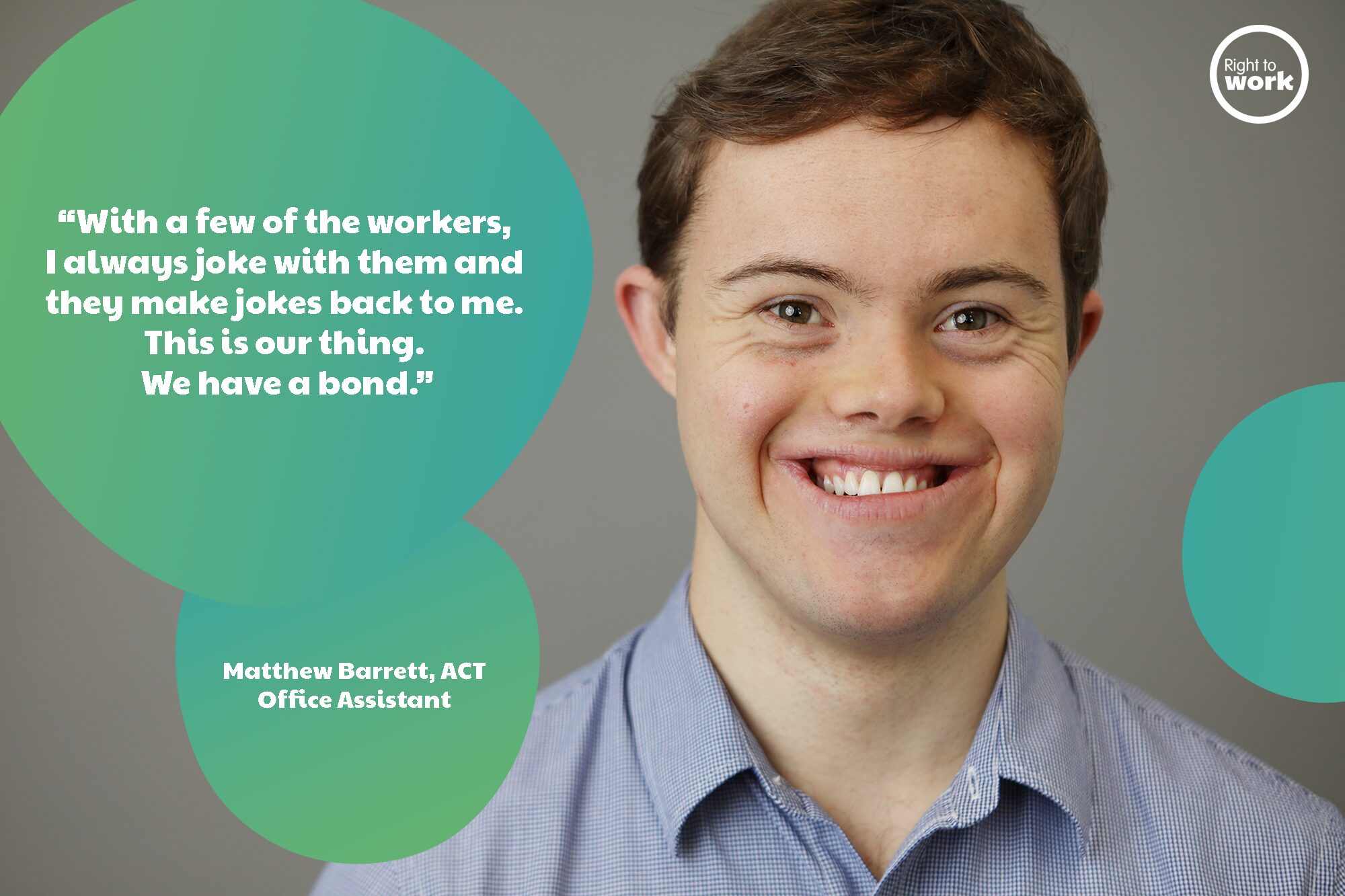 My name is Matthew Barrett and I have two jobs. One of my jobs is as an office assistant and my other job is as a mail assistant.