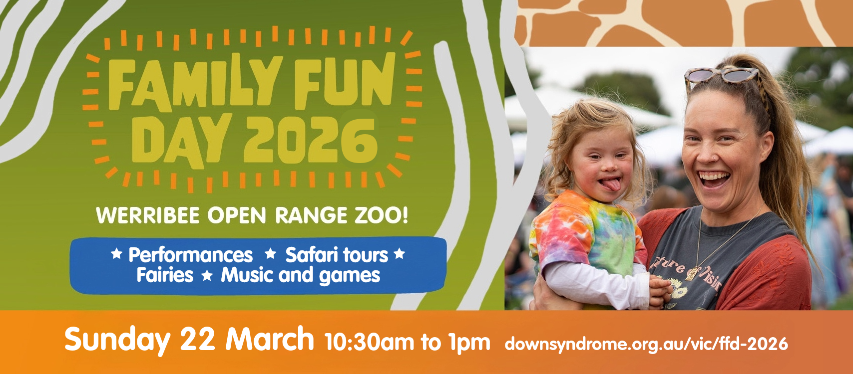 You're invited to DSV's Family Fun Day at Werribee Open Range Zoo on Sunday 22 March 2026 in celebration of World Down Syndrome Day!